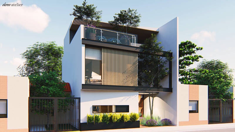 Este proyecto contó con un programa muy espacial, ya que la clienta padece fribomialgia, que es una enfermedad degenerativa que tal vez en un futuro impida su movilidad. La topografía del terreno complico la movilidad, los ingresos a la casa se diseñaron con rampas, con la menor pendiente posible para mejorar la movilidad.